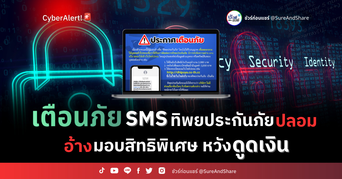 ตำรวจไซเบอร์เตือนภัย มิจฉาชีพแอบอ้างเป็นพนักงานของทิพยประกันภัย ส่ง SMS พร้อมแนบลิงก์เพิ่มเพื่อนบัญชีไลน์ปลอม หลอกขอข้อมูลส่วนตัว และให้ติดตั้งแอปพลิเคชัน หวังดักรหัสผ่านไปทำธุรกรรม เป็นเหตุให้สูญเงิน ด้านทิพยประกันภัย ย้ำ ! ไม่มีช่องทางการติดต่อดังกล่าว และการมอบสิทธิพิเศษในลักษณะนี้