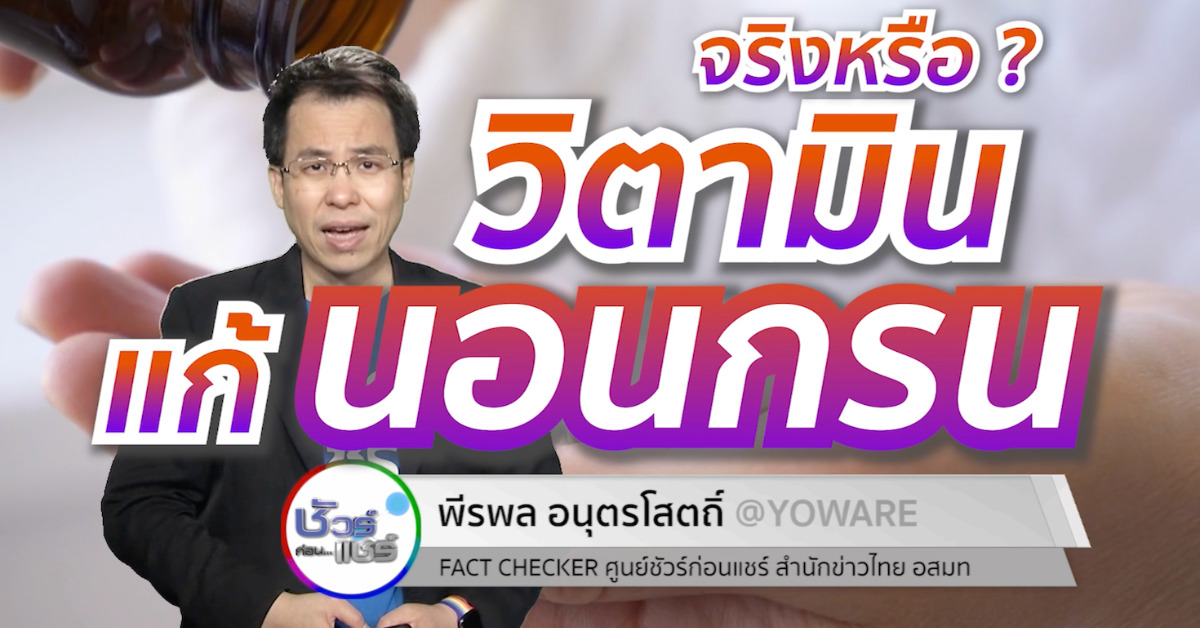 ศูนย์ชัวร์ก่อนแชร์ ตรวจสอบกับ พญ.นวรัตน์ เกษมสุข ภาควิชาโสต นาสิก ลาริงซ์วิทยา คณะแพทยศาสตร์ศิริราชพยาบาล ระบุว่า ยังไม่มีข้อมูลยืนยันชัดเจนว่า การกินวิตามินจะสามารถรักษาอาการนอนกรนให้หายได้