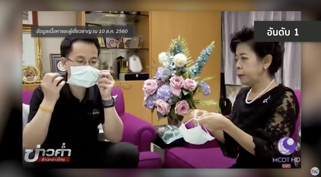“การใส่หน้ากากอนามัยมีแบบเดียว คือใส่ให้ด้านที่มีสารเคลือบกันน้ำหรือด้านมัน ออกข้างนอกเสมอ และเมื่อสวมใส่ก็ควรจะกดพลาสติกให้แนบกับสันจมูกและใบหน้าของเราอยู่เสมอ”
