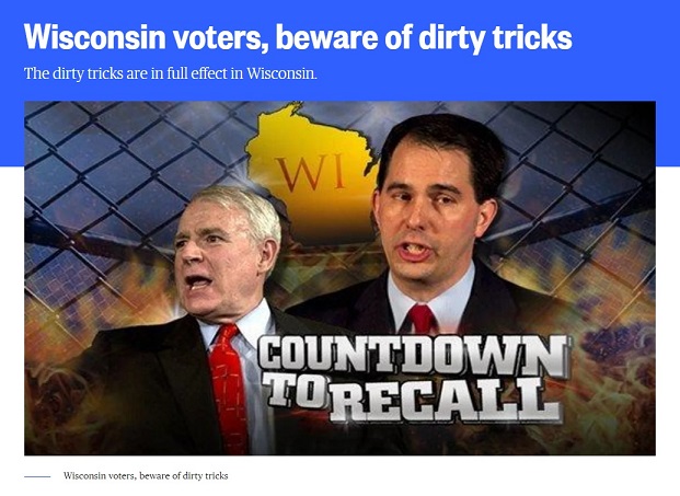 ปี 2012 มีชาวเมืองรัฐวิสคอนซิน ร่วมกันลงชื่อถึง 900,000 รายชื่อ เรียกร้องให้มีการเลือกตั้งเลือกตั้งผู้ว่าการรัฐคนใหม่ (Recall Election) เนื่องจาก สก็อต วอร์คเกอร์ ผู้ว่าการรัฐวิสคอนซิน พรรครีพับลิกัน ถูกร้องเรียนในข้อหาจำกัดสิทธิการต่อรองของลูกจ้างรัฐ หลังจากดำรงตำแหน่งมาได้ 2 ปีเมื่อปี 2010