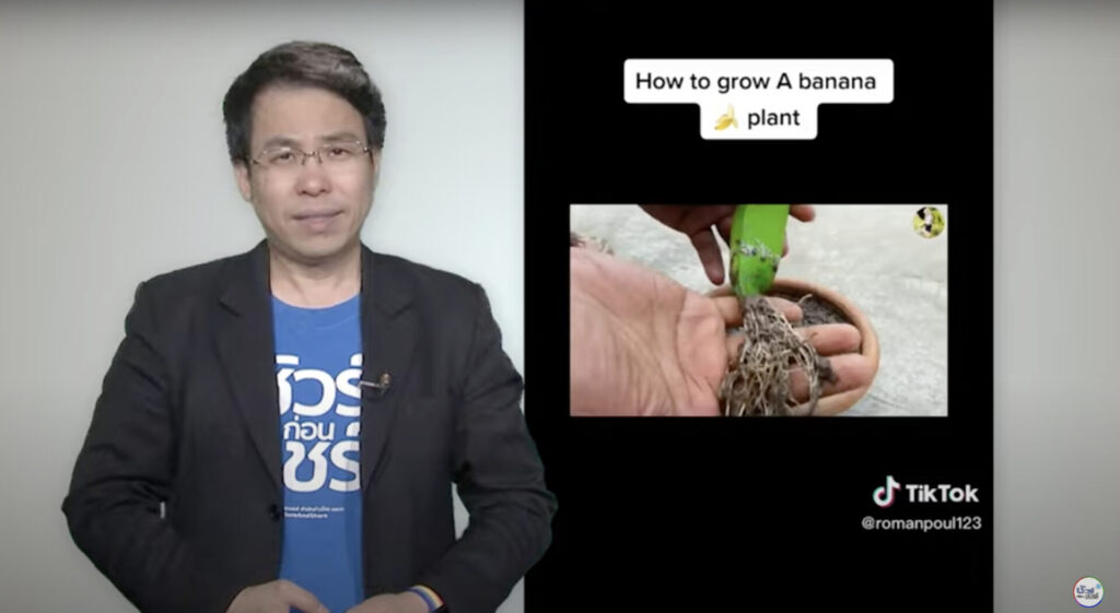 21 พฤษภาคม 2566 – จากกรณีมีการแชร์คลิปแนะนำวิธีปลูกกล้วย DIY ปลูกง่าย ๆ โดยใช้ผลกล้วยสวย ๆ ปักลงไปในดิน จากนั้นให้นำขวดหรือถุงพลาสติกมาครอบเอาไว้ แล้วจะทำให้มีรากออกมาจากผลกล้วยได้นั้น