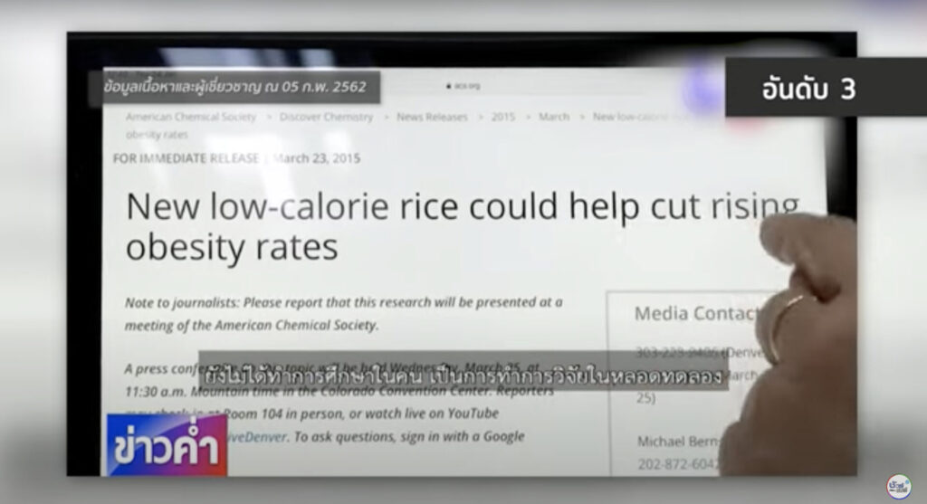 “งานวิจัยที่ว่านี้เป็นเพียงแค่การทดสอบในห้องทดลองเท่านั้น ปกติข้าวมักจะไม่ได้มีน้ำตาล แต่คนอาจจะไปโยงว่าหลังจากเรารับประทานข้าวเข้าไป ร่างกายเราจะต้องมีการย่อยเป็นโมเลกุลที่เล็กที่สุดที่ร่างกายเราจะเอาไปใช้ต่อได้ ก็คือน้ำตาล ซึ่งถ้าย่อยได้น้อยลง ก็จะทำให้ร่างกายได้น้ำตาลเข้าไปน้อยลง”