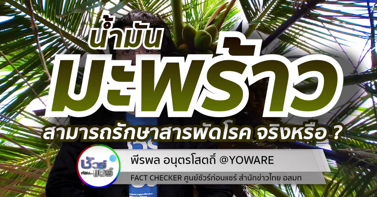 24 พฤษภาคม 2566 – จากกรณีที่มีการแชร์ประโยชน์ของน้ำมันมะพร้าวเอาไว้มากมาย หลายคนก็ว่าหุงข้าวใส่น้ำมันมะพร้าวช่วยลดน้ำตาล อีกทั้งยังช่วยรักษาโรคเริมอีกด้วย เรื่องไหนจริง เรื่องไหนเท็จ พบคำตอบได้ที่ชัวร์ก่อนแชร์ CHECK-LIST ร้อยเรียงเรื่องฮิต ติดอันดับกับชัวร์ก่อนแชร์