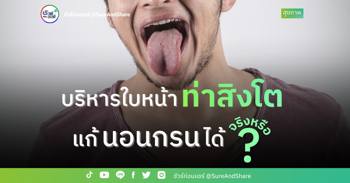 🎯 ตามที่มีการแชร์แนะนำว่า “ทำท่าสิงโตแก้นอนกรน ให้แลบลิ้นยาว ๆ เหลือบตามองบน บริหารก่อนนอน ทำต่อเนื่องอย่างน้อย 7 วัน อาการนอนกรนหายแน่นอน” นั้น