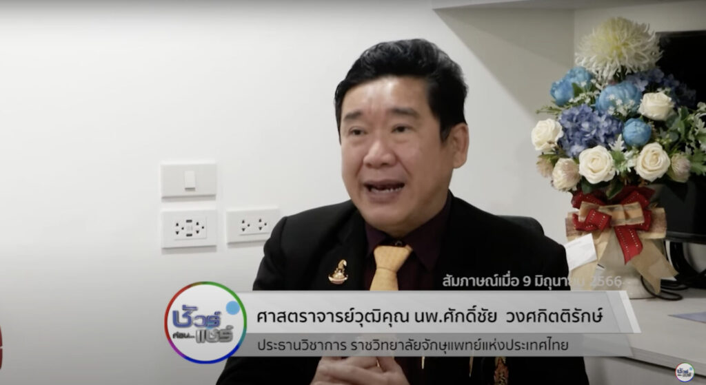 ศูนย์ชัวร์ก่อนแชร์ตรวจสอบกับ ศาสตราจารย์วุฒิคุณ นพ.ศักดิ์ชัย วงศกิตติรักษ์ ประธานวิชาการ ราชวิทยาลัยจักษุแพทย์แห่งประเทศไทย