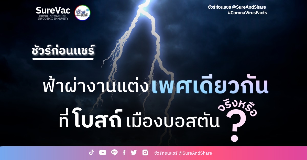 มีคลิปวิดีโอข้อมูลบิดเบือนเผยแพร่ทาง Tiktok และ Twitter ในสหรัฐอเมริกา โดยอ้างว่าเกิดเหตุฟ้าผ่ากลางงานแต่งคนเพศเดียวกันที่โบสถ์ในเมืองบอสตัน รัฐแมสซาชูเซตส์ ส่งผลให้ผู้ร่วมงานเสียชีวิตทั้งหมด