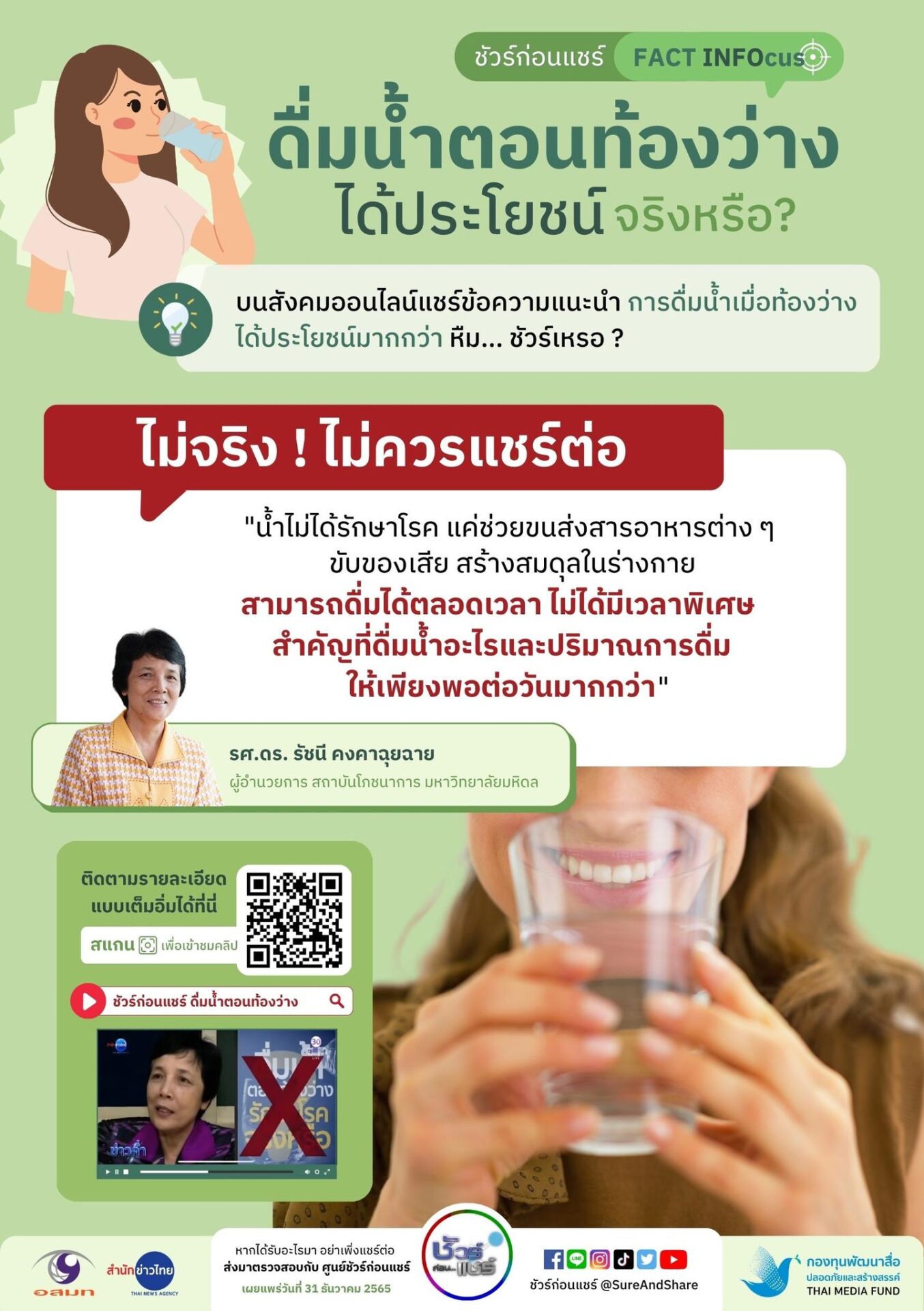 ศูนย์ชัวร์ก่อนแชร์ตรวจสอบกับ รศ.ดร. รัชนี คงคาฉุยฉาย ผู้อำนวยการ สถาบันโภชนาการ มหาวิทยาลัยมหิดล
