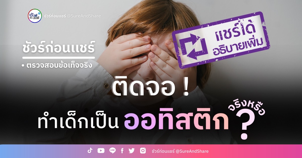 ดูเพิ่มเติมจากรายการ ชัวร์ก่อนแชร์ : ติดจอ ทำให้เด็กเป็นออทิสติก จริงหรือ ?