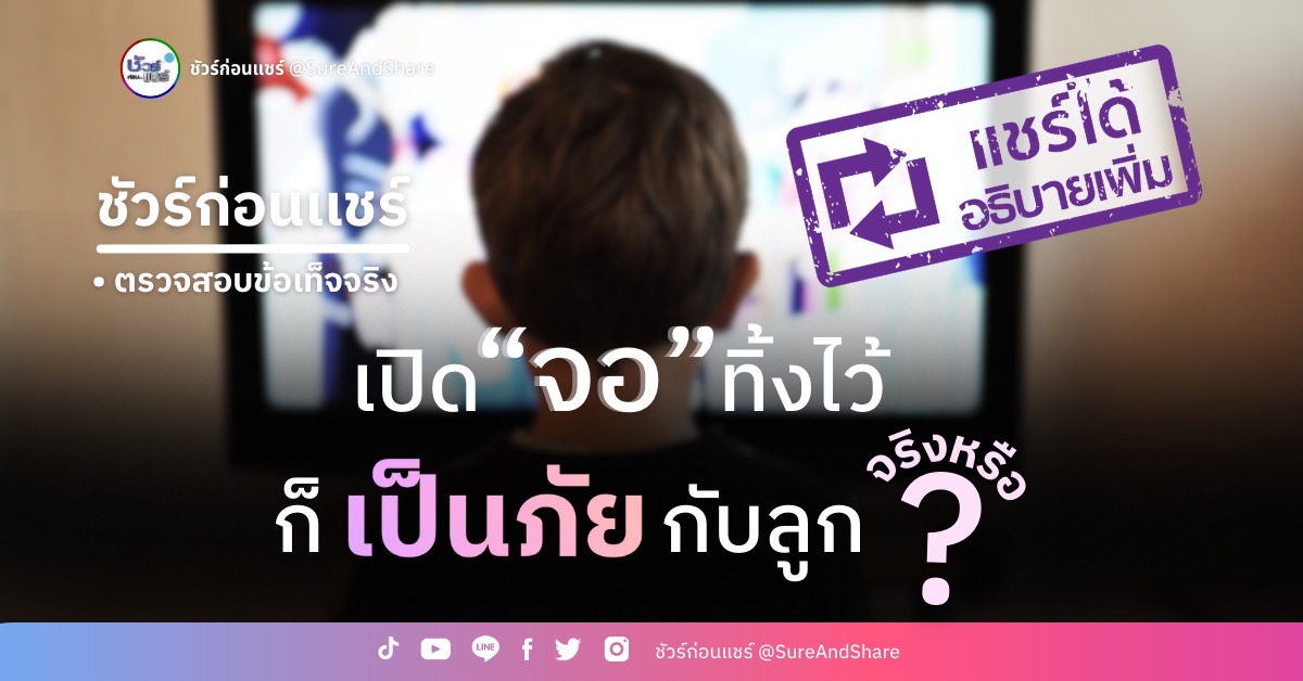 ดูเพิ่มเติมจากรายการ ชัวร์ก่อนแชร์ : แค่เปิด “จอ” ทิ้งไว้ ก็เป็นภัยกับลูกแล้ว จริงหรือ ?