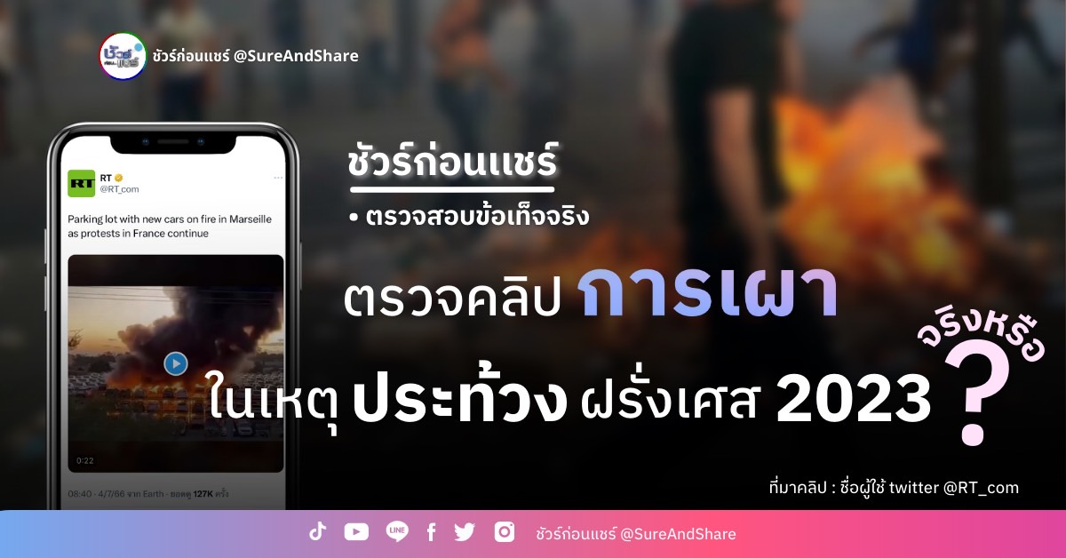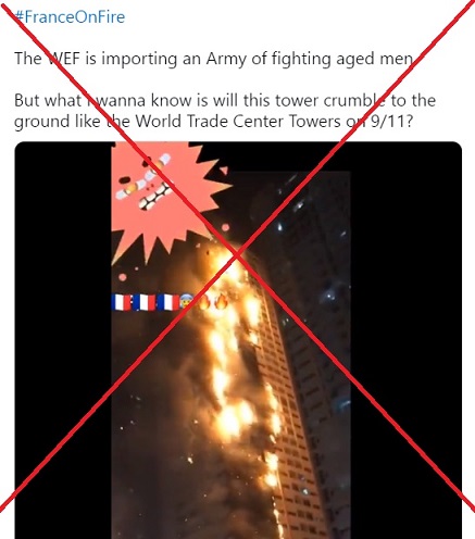 มีการแชร์คลิปวิดีโอที่อ้างว่าเหตุประท้วงในฝรั่งเศสทวีความรุนแรง จนนำไปสู่การวางเพลิงอาคารระฟ้าในประเทศฝรั่งเศส