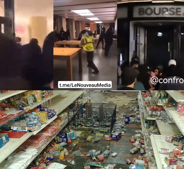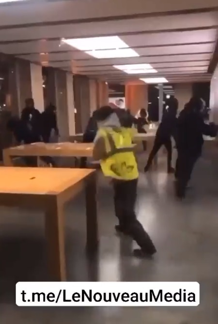 มีการแชร์คลิปวิดีโอที่อ้างว่าผู้ชุมนุมประท้วงจำนวนมากได้บุกเข้าไปปล้นร้าน Apple Store ในเมืองบอร์โด เมืองทางตะวันตกเฉียงใต้ของประเทศฝรั่งเศส