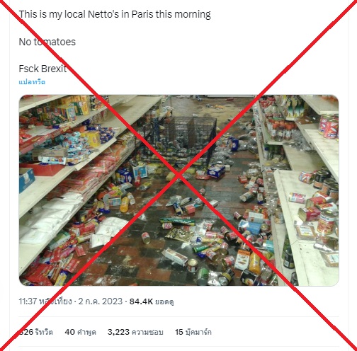 มีการแชร์คลิปภาพที่อ้างว่าห้างซูเปอร์มาร์เก็ตในกรุงปารีส ถูกกลุ่มผู้ประท้วงบุกทำลายจนเสียหาย