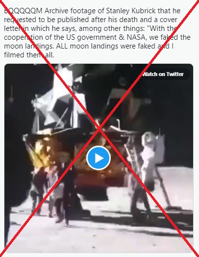 มีข้อมูลบิดเบือนเผยแพร่ทาง Twitter ในต่างประเทศ เมื่อมีการเปิดเผยคลิปวิดีโอเบื้องหลังการถ่ายทำฉากการลงจอดของยานสำรวจดวงจันทร์จากยาน Apollo 11 ในสตูดิโอถ่ายทำภาพยนตร์แห่งหนึ่ง ซึ่งคลิปดังกล่าวเป็นของ สแตนลีย์ คูบริก ผู้กำกับผู้ล่วงลับชาวอเมริกัน ที่ขอร้องเอาไว้ขณะที่ยังมีชีวิตว่า ให้นำเทปวิดีโอดังกล่าวมาเผยแพร่หลังจากที่เขาเสียชีวิตในปี 1999 ซึ่งจดหมายที่แนบกับเทปวิดีโอระบุว่า ด้วยความร่วมมือกับรัฐบาลสหรัฐอเมริกาและองค์กร NASA เราได้ร่วมกันถ่ายทำฉากการพิชิตดวงจันทร์ขึ้นมา ทั้งหมดคือเรื่องลวงโลก และผมถ่ายทำฉากเหล่านี้ทั้งหมด