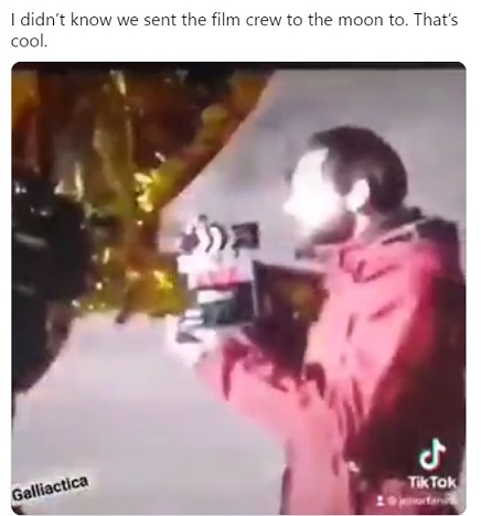 ในคลิปที่กล่าวอ้าง ยังมีการนำภาพนักบินอวกาศจริง ๆ มาเปรียบเทียบเพื่อให้เกิดความสับสน ซึ่งเป็นคลิปที่นำมาจาก For All Mankind สารคดีปี 1989 ขององค์กร NASA เนื้อหาย้อนรอยการเดินทางสู่ดวงจันทร์ของนักบินอวกาศโครงการ Apollo ตั้งแต่ยาน Apollo 7 จนถึงยาน Apollo 17