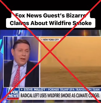 มีข้อมูลสร้างความเข้าใจผิดเผยแพร่ทางโทรทัศน์ในสหรัฐอเมริกา เมื่อ สตีเวน มิลลอย อดีตเจ้าหน้าที่สำนักงานปกป้องสิ่งแวดล้อมสหรัฐอเมริกา (USEPA) ในคณะทำงานช่วงเปลี่ยนผ่านรัฐบาลของ โดนัล ทรัมป์ ให้ความเห็นผ่านรายการสถานีโทรทัศน์ Fox News ว่า ชาวอเมริกันไม่จำเป็นต้องกลับมาสวมหน้ากากอนามัยอีกครั้ง เพราะฝุ่นควันที่ลอยมาจากไฟป่าในประเทศแคนาดาไม่เป็นอันตรายต่อสุขภาพ เนื่องจากควันจากไฟป่าเป็นของที่เกิดขึ้นจากธรรมชาติ พร้อมอ้างว่าฝุ่น PM เพิ่งเริ่มเป็นที่สนใจของสาธารณชนหลัง EPA เปิดประเด็นในช่วงทศวรรษ 1990’s เท่านั้น ทั้ง ๆ ที่ไม่มีหลักฐานว่ามีใครเคยได้รับผลกระทบทางสุขภาพจากฝุ่น PM การวิจัยของ EPA ยังไม่สามารถพิสูจน์ได้ว่าฝุ่น PM ส่งผลต่อสุขภาพของมนุษย์อย่างชัดเจน การอ้างเรื่องอันตรายจากฝุ่น PM จึงเป็นวิทยาศาสตร์ปลอม (Junk Science)