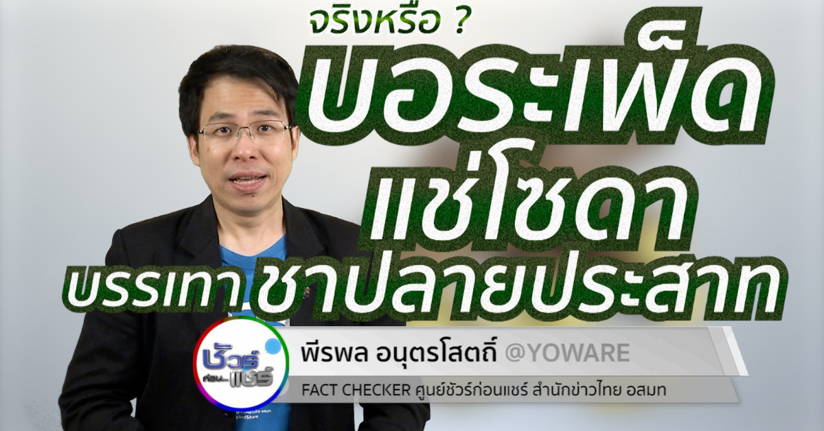 ศูนย์ชัวร์ก่อนแชร์ ตรวจสอบกับ พล.ต. รศ.นพ. สามารถ นิธินันทน์ อายุรแพทย์ สาขาประสาทวิทยา กรรมการสมาคมโรคหลอดเลือดสมองไทย กล่าวว่า “ยังไม่มีหลักฐานทางวิทยาศาสตร์ยืนยันว่าสูตรนี้ใช้ได้ผล บอระเพ็ดและโซดาไม่มีสรรพคุณช่วยบรรเทาอาการชา