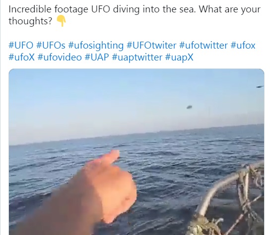 มีภาพและคลิปวิดีโอสร้างความเข้าใจผิดเผยแพร่ทางสื่อสังคมออนไลน์ในต่างประเทศ ที่อ้างว่า UFO/UAP หรือวัตถุบินที่ไม่สามารถระบุได้ ถูกบันทึกภาพเอาไว้ได้ในหลายสถานที่ ทั้งตามท้องถนนในเมืองและภาพบันทึกการบินของยานเหาะที่หนีการไล่ล่าของเครื่องบินที่ควบคุมโดยมนุษย์ด้วยเทคโนโลยีที่ล้ำหน้า ก่อนจะบินหายลงไปในทะเลลึกอย่างไร้ร่องรอย