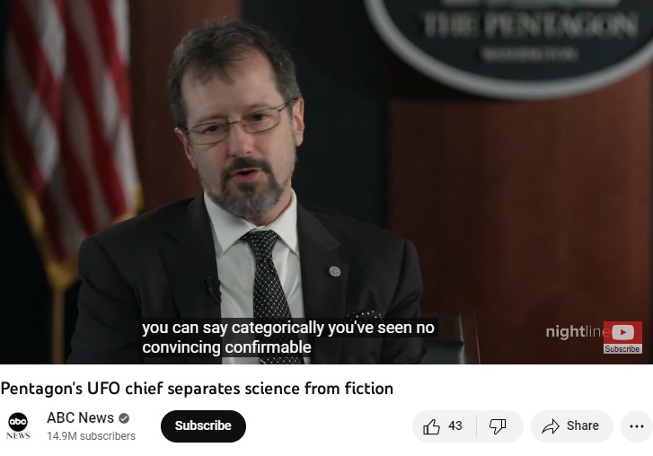 - กระทรวงกลาโหมสหรัฐอเมริกายืนยันว่ารัฐบาลไม่มีโครงการลับเพื่อศึกษาซากยาน UFO/UAP หรือซากเอเลี่ยนแต่อย่างใด
