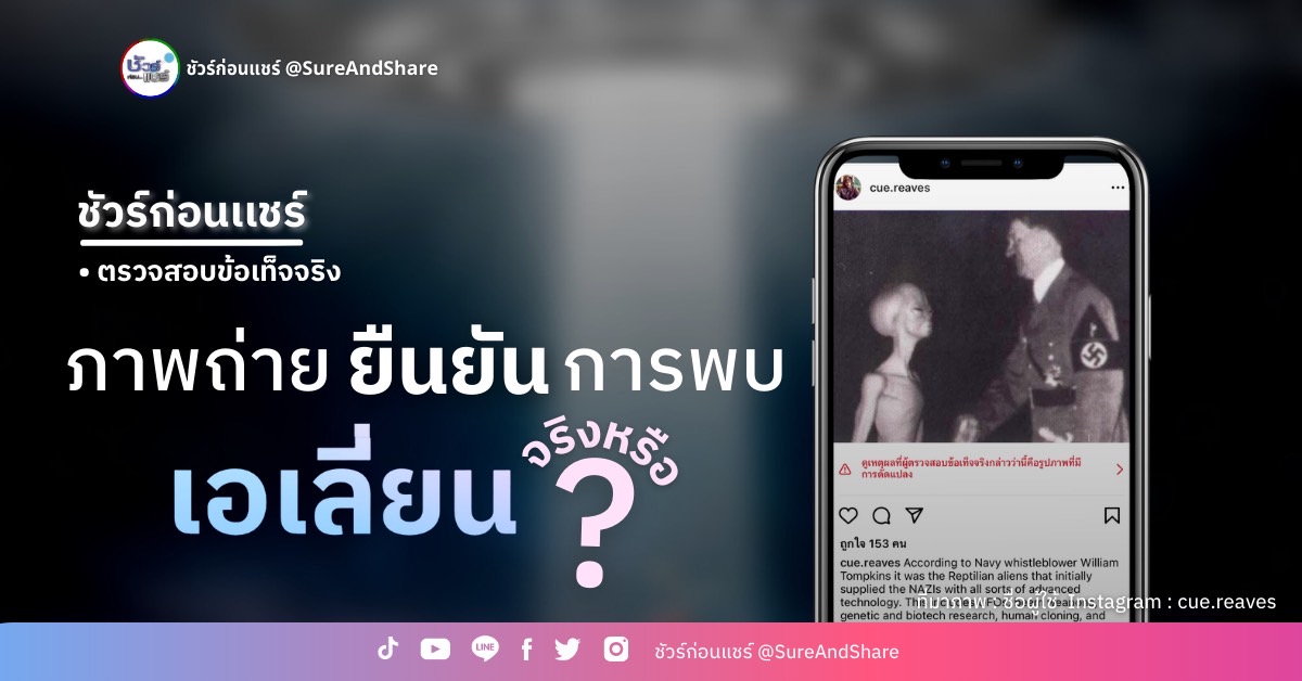 มีข้อมูลบิดเบือนเผยแพร่ทางสื่อสังคมออนไลน์ในต่างประเทศ ที่อ้างว่ามีหลักฐานภาพถ่ายที่สำคัญทางประวัติศาสตร์ ที่ยืนยันการมาถึงของมนุษย์ต่างดาวหรือเอเลี่ยน