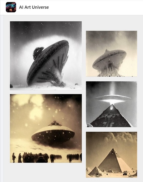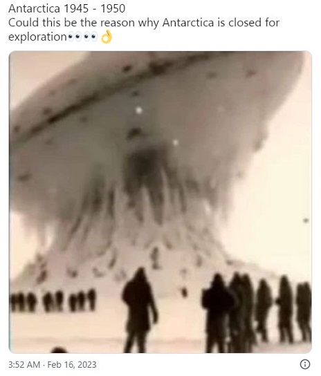 ภาพที่สามคือภาพถ่ายซาก UFO/UAP ที่ถูกหิมะปกคุลม โดยอ้างว่าถ่ายได้ที่ทวีปแอนตาร์กติกา บริเวณขั้วโลกใต้ในช่วงปี 1945-1950 โดยผู้โพสต์อ้างว่าภาพ UFO/UAP ชิ้นนี้คือหลักฐานยืนยันว่า การที่แอนตาร์กติกาเป็นดินแดนที่ถูกปิดจากโลกภายนอกมาเป็นเวลานาน เนื่องจากถูกใช้เป็นสถานที่เก็บรักษาซาก UFO/UAP นั่นเอง