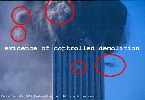 - การรื้อถอนด้วยระเบิดมักจะทำด้วยการฝังระเบิดบริเวณด้านล่างของอาคาร แต่ตึก World Trade Center เริ่มถล่มจากจุดที่เครื่องบินพุ่งชนด้านบนของอาคาร