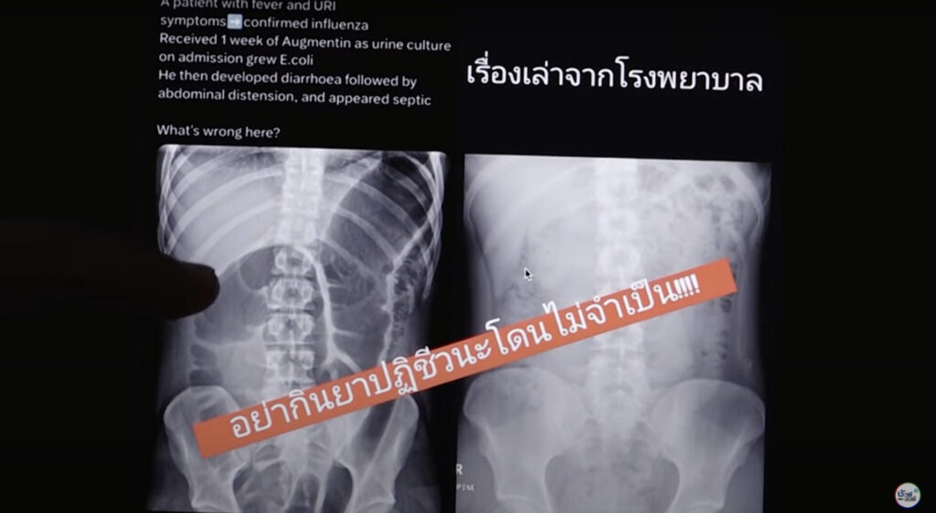 15 กันยายน 2566 – ตามที่มีการแชร์ภาพและข้อความเตือนว่า อย่ากินยาโดยไม่จำเป็น ผู้ป่วยรายหนึ่งได้รับยาปฏิชีวนะ หลังกินยา 1 สัปดาห์ ท้องเสีย ปวดท้อง ภาพทางซ้ายคือ เอกซเรย์ผู้ป่วย ลำไส้ใหญ่อักเสบ ขยายจนเต็มท้องนั้น