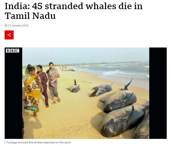 ภาพดังกล่าวได้รับการเผยแพร่ทางเว็บไซต์สำนักข่าว BBC เมื่อวันที่ 12 มกราคม 2016 เหตุเกิดที่ชายหาดรัฐทมิฬนาฑู ประเทศอินเดีย