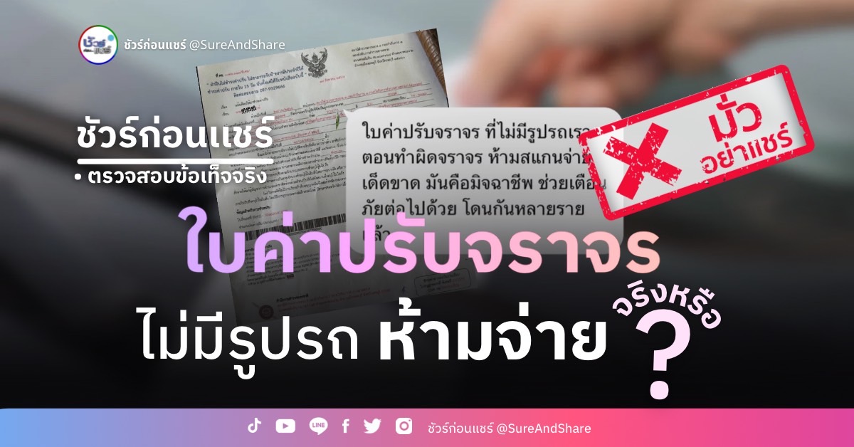 ตามที่มีการแชร์เตือนใบค่าปรับจราจร ไม่มีรูปรถห้ามจ่าย นั้น