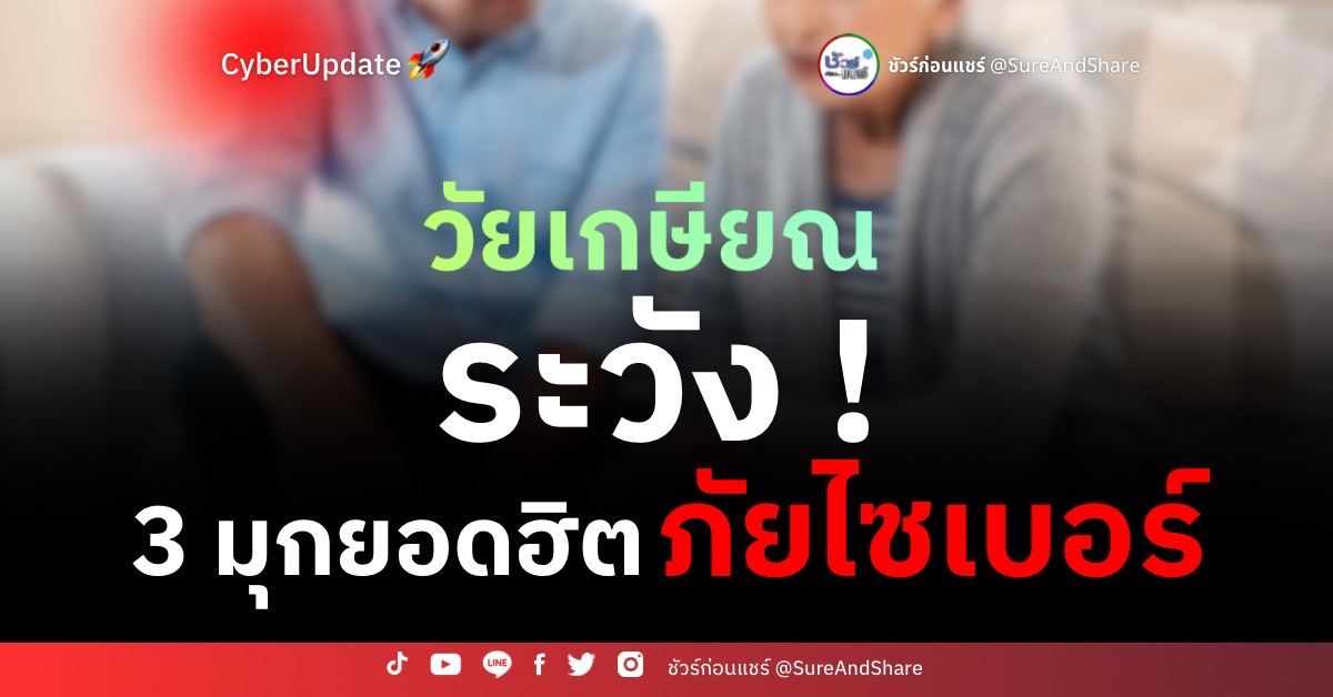 เดือนกันยายนของทุกปี ถือเป็นช่วงครบกำหนดอายุการรับราชการ หรือที่เรียกว่า เกษียณอายุราชการ ทำให้มิจฉาชีพมักอาศัยช่วงเวลาดังกล่าวมาหลอกลวงและแสวงหาผลประโยชน์โดยผิดกฎหมาย จากสถิติการแจ้งความออนไลน์ของสำนักงานตำรวจแห่งชาติ ตั้งแต่วันที่ 1 มีนาคม 2565 – 17 กันยายน 2566 พบว่า มีหลายกลโกงที่มักใช้หลอกคนวัยเกษียณ วันนี้ชัวร์ก่อนแชร์ CyberUpdate🚀 จะพาทุกคนไปดูมุกยอดฮิตของเหล่าโจรออนไลน์ว่ามีอะไรกันบ้าง