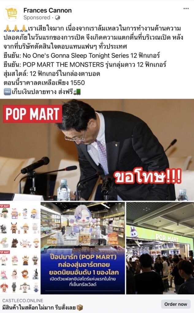 กระแสข่าวการเปิดตัวร้านขายของเล่นชื่อดังจากประเทศจีน อย่าง “POPMART” ได้สร้างเสียงฮือฮาให้กับเหล่าบรรดานักสะสมชาวไทยเป็นอย่างมาก เนื่องจากเป็นการเปิดตัวสาขาแรกในประเทศไทย และในร้านยังได้จำหน่ายสินค้าตัวพิเศษที่มีขายแค่ในประเทศไทยเท่านั้นและมีจำนวนจำกัด ทำให้นักสะสมและคนที่สนใจแห่ไปรอกันตั้งแต่คืนก่อนเปิดร้าน และในวันเปิดร้าน ได้เกิดเหตุความชุลมุนระหว่างการต่อคิวเข้าร้าน มีทั้งคนเป็นลมและล้ม จากเหตุการณ์ดังกล่าว ทำให้มิจฉาชีพได้ฉวยโอกาสนำมาสร้างเป็นมุกหลอกขายของเล่นอ้างชื่อ “POPMART” ผ่านเพจเฟซบุ๊กปลอม ซึ่งมีผู้เสียหายจำนวนมาก วันนี้ ชัวร์ก่อนแชร์ CyberUpdate🚀 จะพาทุกคนไปดูกันว่า เพจปลอมหลอกขายสินค้ามีรูปแบบและกลวิธีการหลอกอย่างไรบ้าง