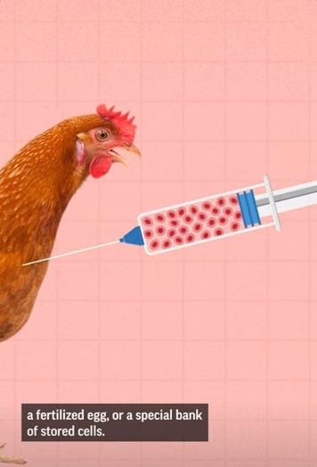 ในการผลิตเนื้อไก่เพาะเลี้ยง ผู้ผลิตจะใช้เซลล์ผิวหนังและกล้ามเนื้อของไก่ หรือนำเซลล์มาจากไข่ไก่ที่ผสมพันธุ์แล้วหรือแม้แต่ขนไก่