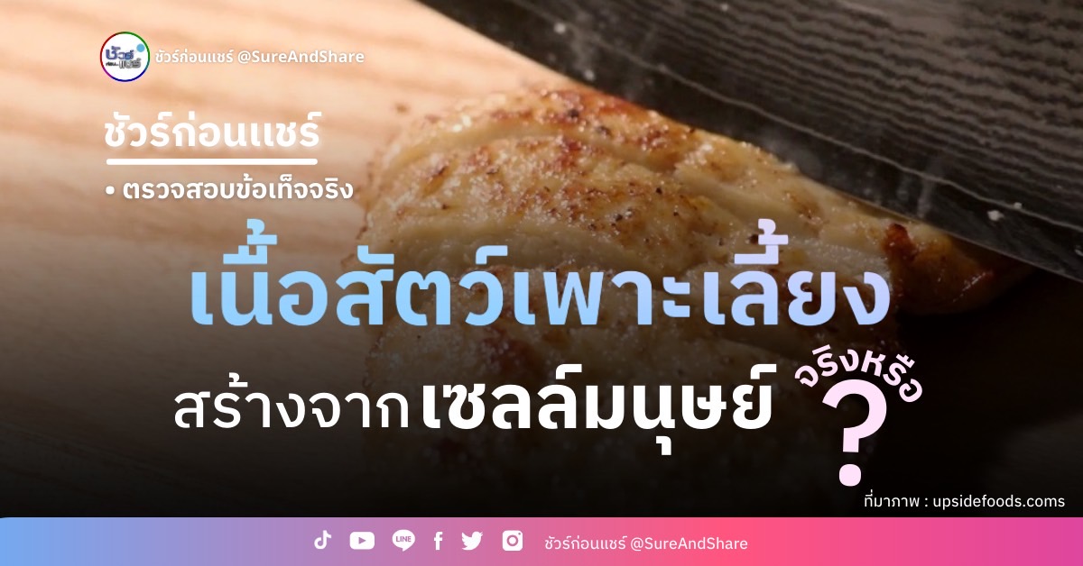 จากการตรวจสอบโดย Fact Checker ในต่างประเทศยืนยันว่า ไม่มีการใช้เซลล์ของมนุษย์ในการผลิตเนื้อสัตว์เพาะเลี้ยงแต่อย่างใด