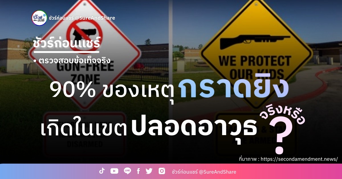 - งานวิจัยจากกลุ่มสนับสนุนการควบคุมการพกพาปืนในสหรัฐฯ พบว่ามีเหตุกราดยิงเกิดในเขตปลอดอาวุธเพียง 10%