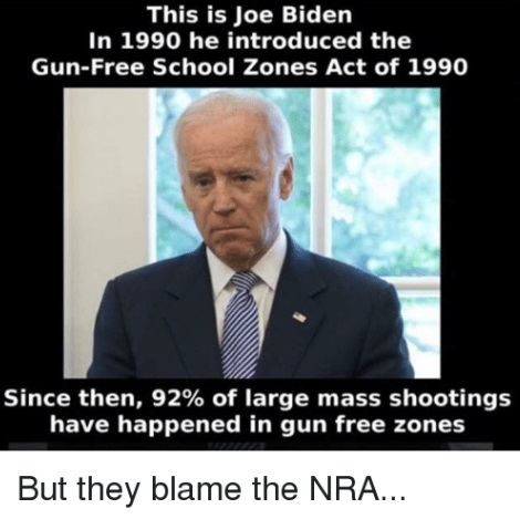 Gun Free School Zones Act เป็นกฎหมายที่ประกาศใช้ในสหรัฐอเมริกาครั้งแรกเมื่อปี 1990 ในรัฐบาลของ จอร์จ เอช. ดับเบิลยู. บุช จากการผลักดันโดย โจ ไบเดน ซึ่งขณะนั้นดำรงตำแหน่งวุฒิสมาชิกรัฐเดลาแวร์