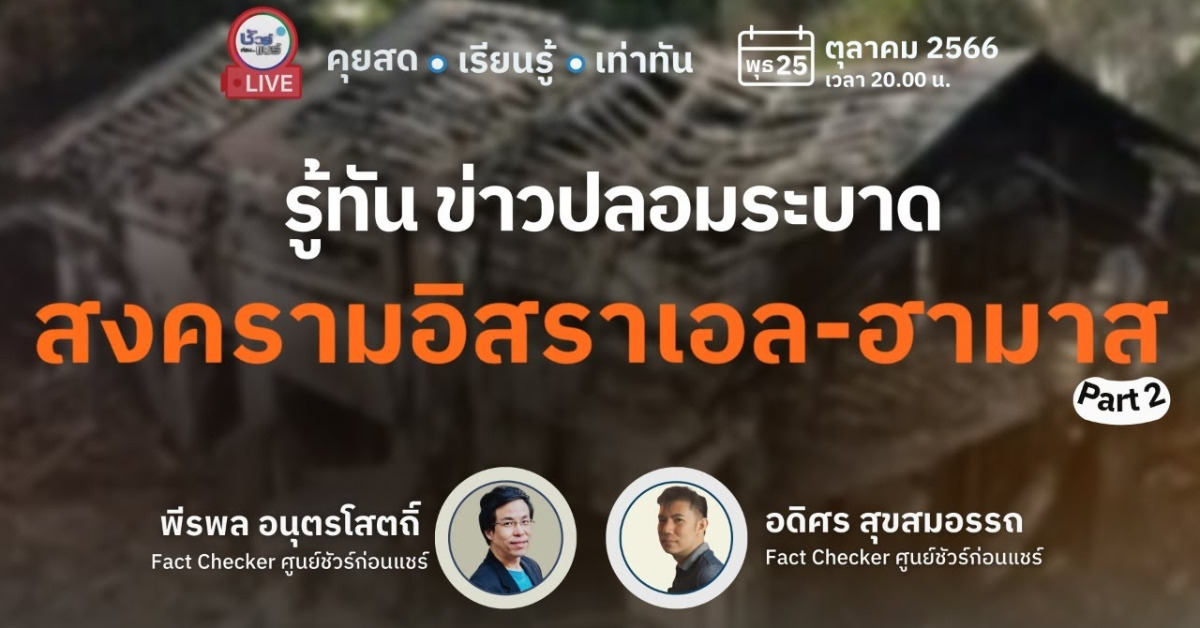 🎯 เรื่อง : รู้ทัน ข่าวปลอมระบาด สงครามอิสราเอล-ฮามาส Part 1 🔎 กับ อดิศร สุขสมอรรถ Fact Checker ศูนย์ชัวร์ก่อนแชร์