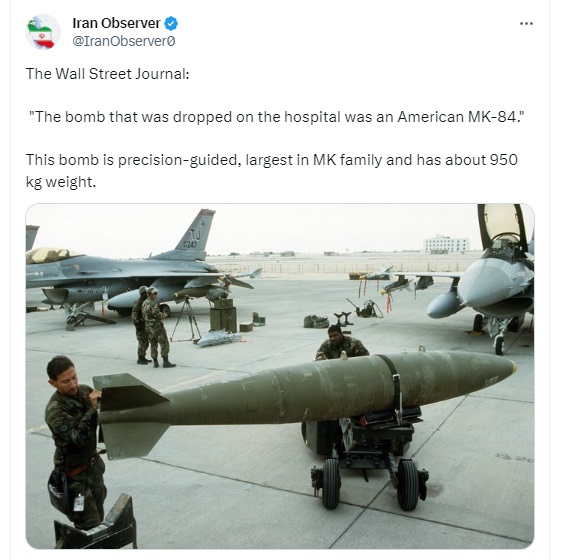 แม้จะเป็นข้อมูลที่มีการยอดไลก์และยอดแชร์รวมกันทาง X เกือบ 9,000 ครั้งในเวลาไม่กี่วัน แต่ Wall Street Journal ยืนยันว่าไม่เคยรายงานข่าวการใช้ระเบิด Mark 84 ถล่มโรงพยาบาลในฉนวนกาซาแต่อย่างใด