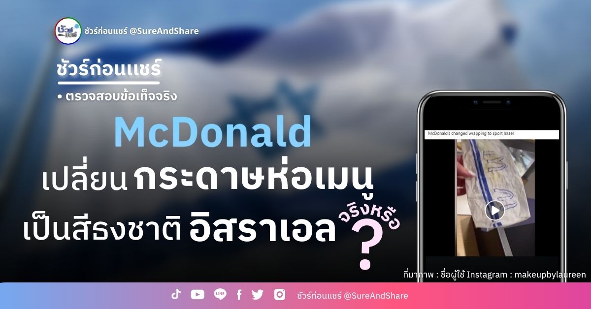 - McDonald ใช้กระดาษห่อเมนูหลากหลายสีมาหลายปี เช่นเดียวกับสีฟ้าและสีขาวที่คล้ายกับธงชาติอิสราเอล