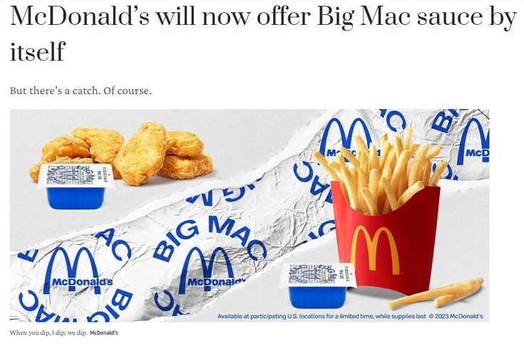 รายงานจากสำนักข่าว New York Daily และ USA Today เมื่อเดือนเมษายน 2023 ระบุว่า เมื่อครั้งที่ McDonald เปิดตัวเมนู Big Mac สำหรับจำหน่ายทั่วสหรัฐอเมริกาเป็นครั้งแรกในปี 1968 กระดาษห่อเมนูอาหารที่ใช้ก็เป็นสีฟ้าและสีขาวเช่นเดียวกัน