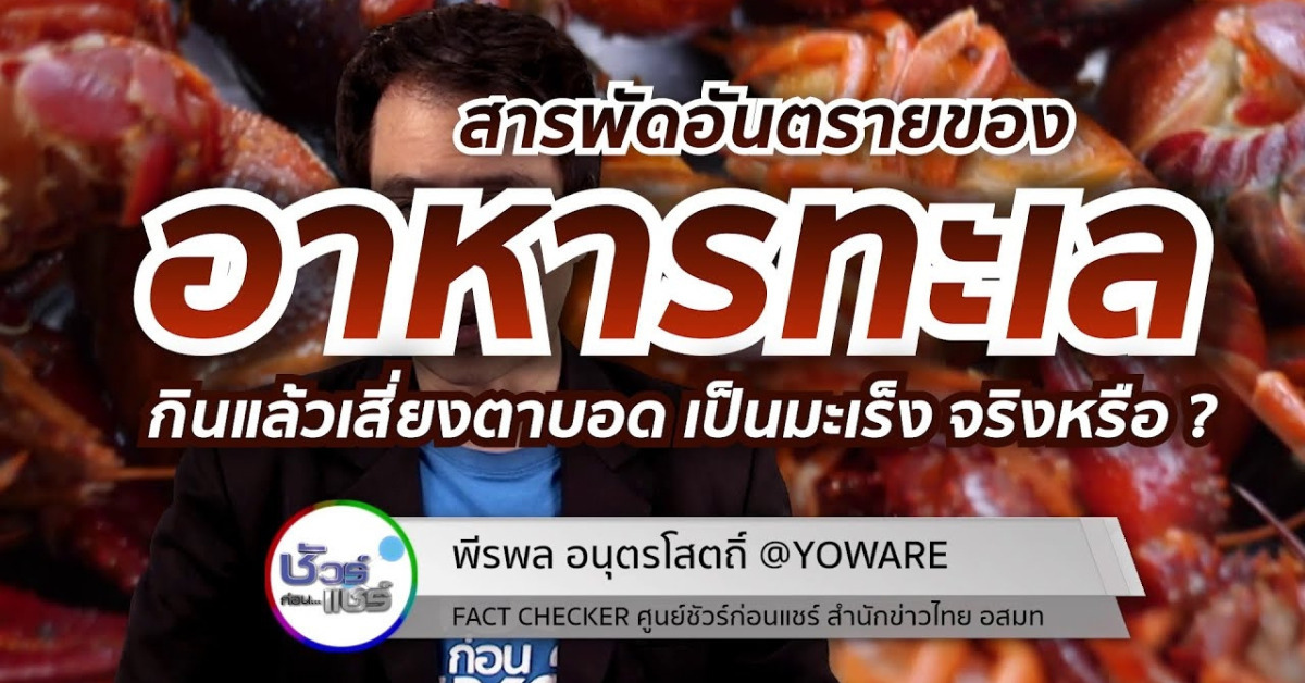 ตรวจสอบข้อเท็จจริงกับ : นพ.สุพจน์ นิ่มอนงค์ สาขาวิชาโรคระบบทางเดินอาหาร โรงพยาบาลศิริราช ,นางวรรณวิภา สุวรรณรักษ์ ผู้เชี่ยวชาญด้านตรวจสอบคุณภาพผลิตภัณฑ์สัตว์น้ำ กรมประมง และ รศ.ดร.รัชนี คงคาฉุยฉาย ผู้อำนวยการ สถาบันโภชนาการ มหาวิทยาลัยมหิดล