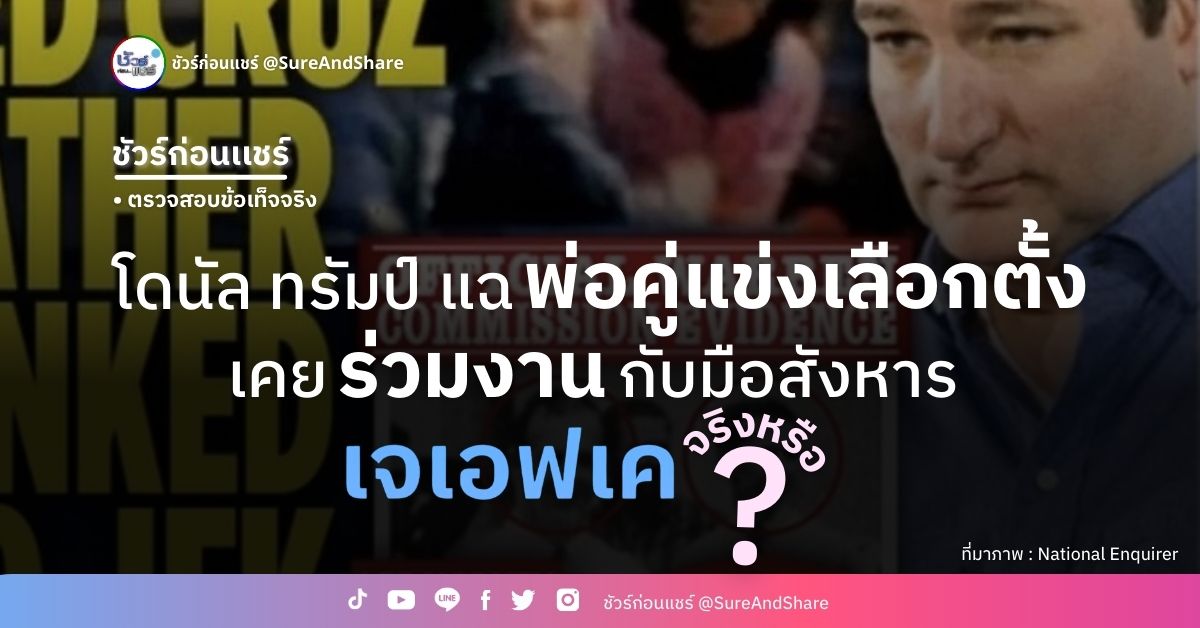 - การตรวจสอบโดยผู้เชี่ยวชาญไม่พบหลักฐานว่าชายที่ถ่ายภาพร่วมกับมือสังหารเจเอฟเค เป็นคนเดียวกับพ่อคู่แข่งเลือกตั้งของ โดนัลด์ ทรัมป์