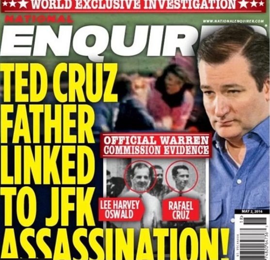มีข้อมูลบิดเบือนเผยแพร่ทางสื่อโทรทัศน์ในสหรัฐอเมริกา เมื่อ โดนัลด์ ทรัมป์ ซึ่งขณะนั้นกำลังลุ้นการเป็นตัวแทนพรรครีพับลิกันเพื่อชิงท้าชิงตำแหน่งประธานาธิบดี ได้ให้สัมภาษณ์ทางโทรศัพท์กับสถานี Fox News ว่า ราฟาเอล ครูซ บิดาของ เท็ด ครูซ วุฒิสมาชิกรัฐเท็กซัส คู่แข่งจากพรรคเดียวกัน มีส่วนพัวพันในคดีลอบสังหาร จอห์น เอฟ. เคนเนดี หลังมีหลักฐานภาพถ่ายบุคคลที่คล้ายกับ ราฟาเอล ครูซ ไปร่วมกิจกรรมทางการเมืองร่วมกับ ลี ฮาร์วีย์ ออสวอลด์ ผู้ที่ถูกกล่าวหาว่าเป็นผู้ลั่นไกสังหารอดีตประธานาธิบดีสหรัฐอเมริกาเมื่อปี 1963