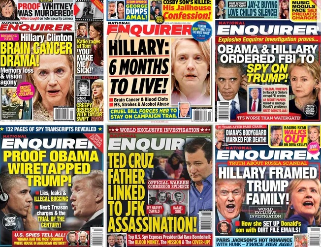 หลายปีที่ผ่านมา National Enquirer มักตีพิมพ์เนื้อหาเอื้อประโยชน์ให้กับ โดนัลด์ ทรัมป์ บ่อยครั้ง โดยเฉพาะในช่วงหาเสียงชิงตำแหน่งประธานาธิบดีสหรัฐอเมริกาเมื่อปี 2016 National Enquirer เน้นการเผยแพร่เนื้อหาสนับสนุนโดนัลด์ ทรัมป์และโจมตีคู่แข่งของเขาอย่างชัดเจน