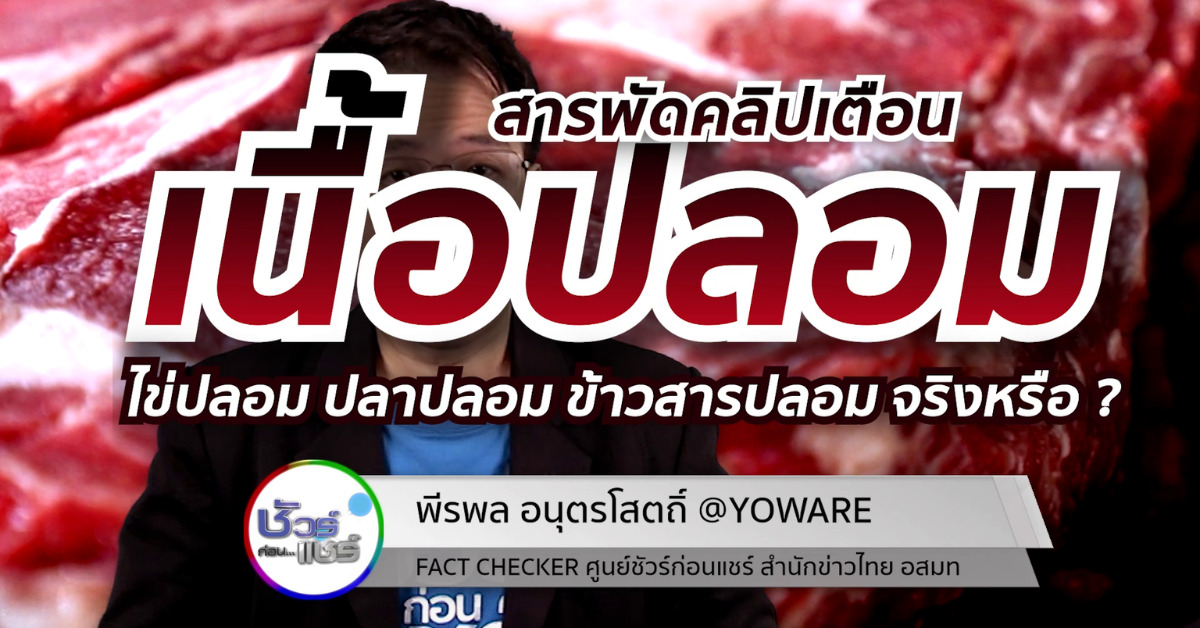 6 ธันวาคม 2566 – ตามที่มีการแชร์เกี่ยวกับคำเตือนอาหารปลอมเอาไว้มากมาย ทั้งให้ระวังสาหร่ายที่ทำมาจากถุงดำ อีกทั้งยังมีเนื้อปลอม ไข่ปลอม และข้าวสารปลอมจากพลาสติกอีกด้วย ?! เรื่องไหนจริง เรื่องไหนเท็จ พบคำตอบได้ที่ชัวร์ก่อนแชร์ CHECK-LIST ร้อยเรียงเรื่องฮิต ติดอันดับจากชัวร์ก่อนแชร์