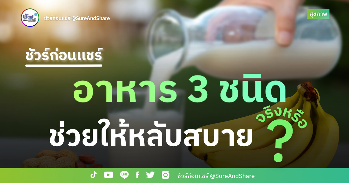 อาหารทั้ง 3 ชนิดที่แชร์กันว่าช่วยให้หลับสบายนั้น จริงบางส่วน และต้องดูด้วยว่าเป็นกล้วยชนิดไหน เป็นถั่วชนิดไหน เพราะว่าช่วยได้แตกต่างกัน