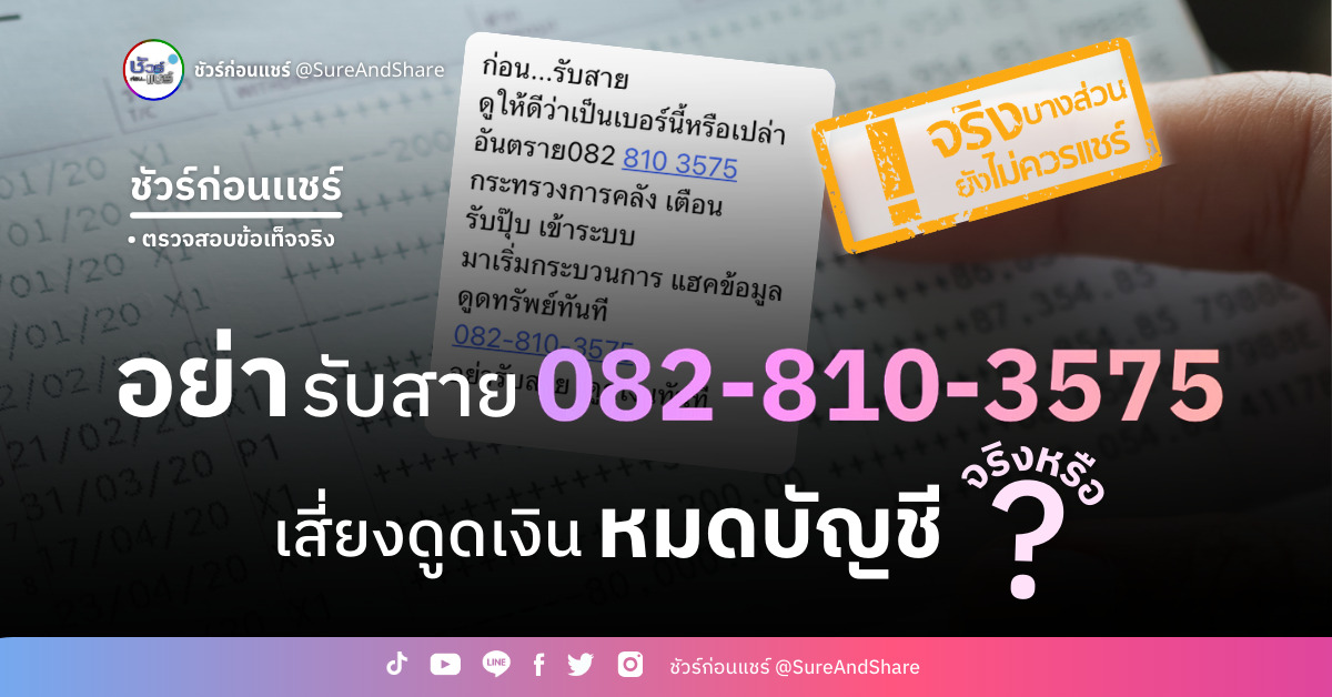 ตามที่มีการแชร์ข้อความ “อย่ารับสายเบอร์โทรศัพท์ 082-810-3575 เพราะอาจโดนดูดเงินหมดบัญชี” นั้น