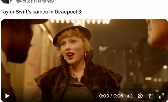 มีข้อมูลสร้างความเข้าใจผิดเผยแพร่ทาง X ในสหรัฐอเมริกา เมื่อมีการแชร์คลิปวิดีโอที่อ้างว่าเป็นฉากที่ เทย์เลอร์ สวิฟต์ นักร้องคนดังได้ปรากฏตัวใน Deadpool 3 ภาพยนตร์เรื่องล่าสุดของ Marvel Cinematic Universe ที่จะออกฉายปีหน้านี้