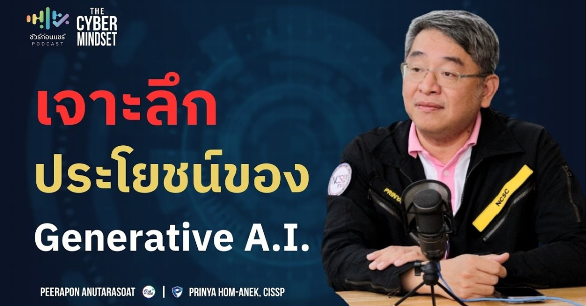 Generative Ai มีประโยชน์กับเราอย่างไร และจะพัฒนาการใช้ชีวิตของมนุษย์ให้สะดวกมากขึ้นแค่ไหน ติดตามได้ใน ชัวร์ก่อนแชร์ PODCAST ซีรีส์ THE CYBER MINDSET จะนำเสนอเนื้อหาที่ช่วยตอบข้อสงสัยและสร้างความเข้าใจเกี่ยวกับข่าวในโลกไซเบอร์ที่อาจใกล้ตัวคุณผู้ฟังมากกว่าที่คิด เพื่อลดความเสี่ยงการถูกโจรกรรมทางออนไลน์และเสริมภูมิคุ้มกันภัยไซเบอร์ให้ไม่ตกเป็นเหยื่อจากความไม่รู้เท่าทัน