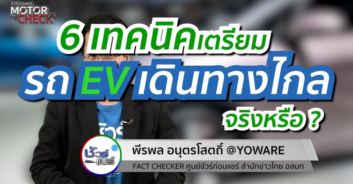 26 ธันวาคม 2566 – บนสังคมออนไลน์แชร์ 6 ข้อแนะนำสำหรับผู้ที่ต้องการใช้รถยนต์ไฟฟ้าเพื่อเดินทางไกลในช่วงเทศกาล เช่น ตรวจสภาพอุปกรณ์ต่าง ๆ และ วางแผนจุดชาร์จ