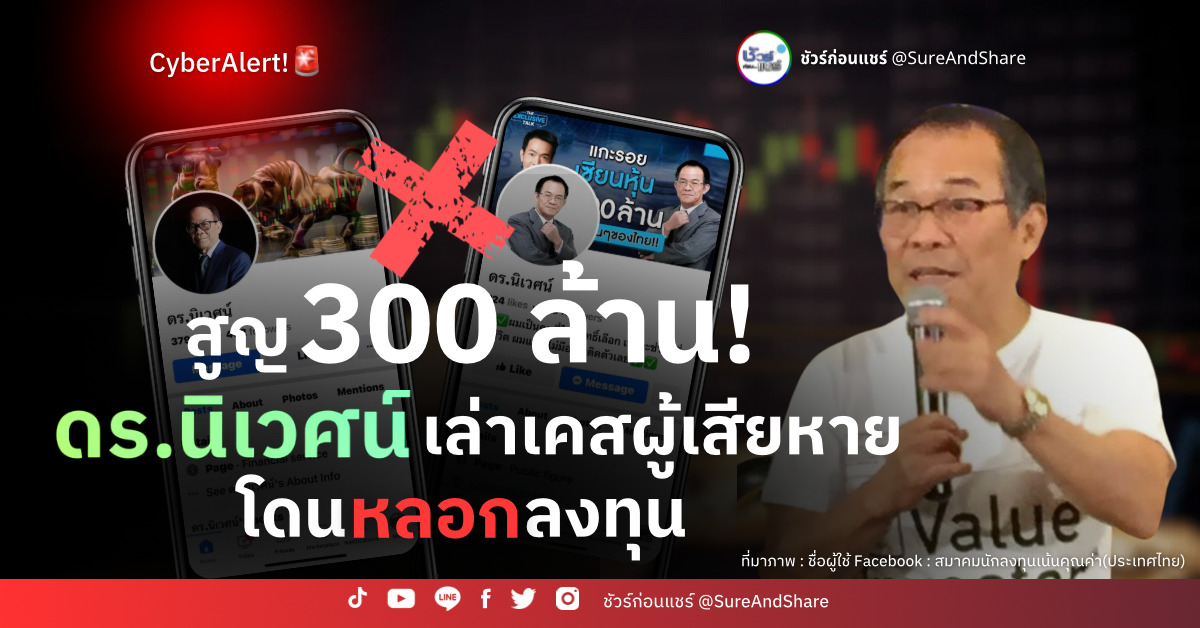 ดร.นิเวศน์ เหมวชิรวรากร นักลงทุนเน้นคุณค่า หรือ วีไอ (Value Investor) ได้เขียนบทความ “เผชิญหน้าเหยื่อ” เพื่อเตือนภัยมิจฉาชีพ พร้อมทั้งย้ำว่าตนเองไม่มีส่วนเกี่ยวข้อง และไม่มีการเชิญชวนลงทุนผ่านเพจเฟซบุ๊ก ไลน์ หรือเว็บไซต์แต่อย่างใด หลังมีผู้เสียหายเดินทางมาพบ ดร. นิเวศน์ ถึงบ้าน ก่อนพบว่า ไม่ใช่ตัวจริง เสียหายกว่า 300 ล้าน