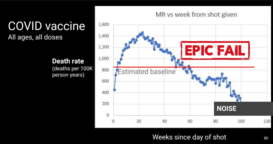 สตีฟ เคิร์ช จึงสรุปว่า สาเหตุของการเสียชีวิตที่เพิ่มขึ้น มีปัจจัยจากวัคซีนโควิด-19 โดยคาดว่าวัคซีนโควิด-19 คือสาเหตุของการเสียชีวิต 1 ครั้งต่อการฉีดวัคซีนทุก ๆ 1,000 โดส เมื่อเทียบกับการฉีดวัคซีนทั่วโลกจะเท่ากับว่า วัคซีนโควิด-19 คือสาเหตุของการเสียชีวิตของผู้รับวัคซีนมากกว่า 13 ล้านราย